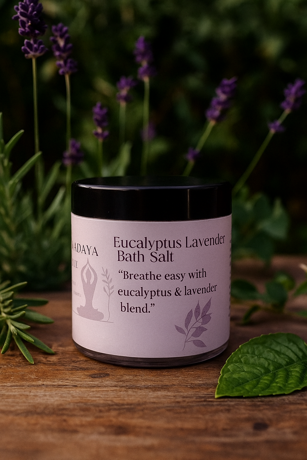 Description:- Refresh your senses with Breathe Easy, a revitalizing soak made with pure eucalyptus and lavender essential oils — the perfect duo to open up airways and soothe fatigue. Blended with Epsom salts and Himalayan pink salt, this soak helps ease congestion, improve circulation, and relax tired muscles. Dried mint leaves and lavender buds create a spa-like experience, especially during seasonal colds or mental fog. Feel your breath deepen, shoulders drop, and mind clear as you soak. Best used for: sinus relief, mental clarity, respiratory comfort.