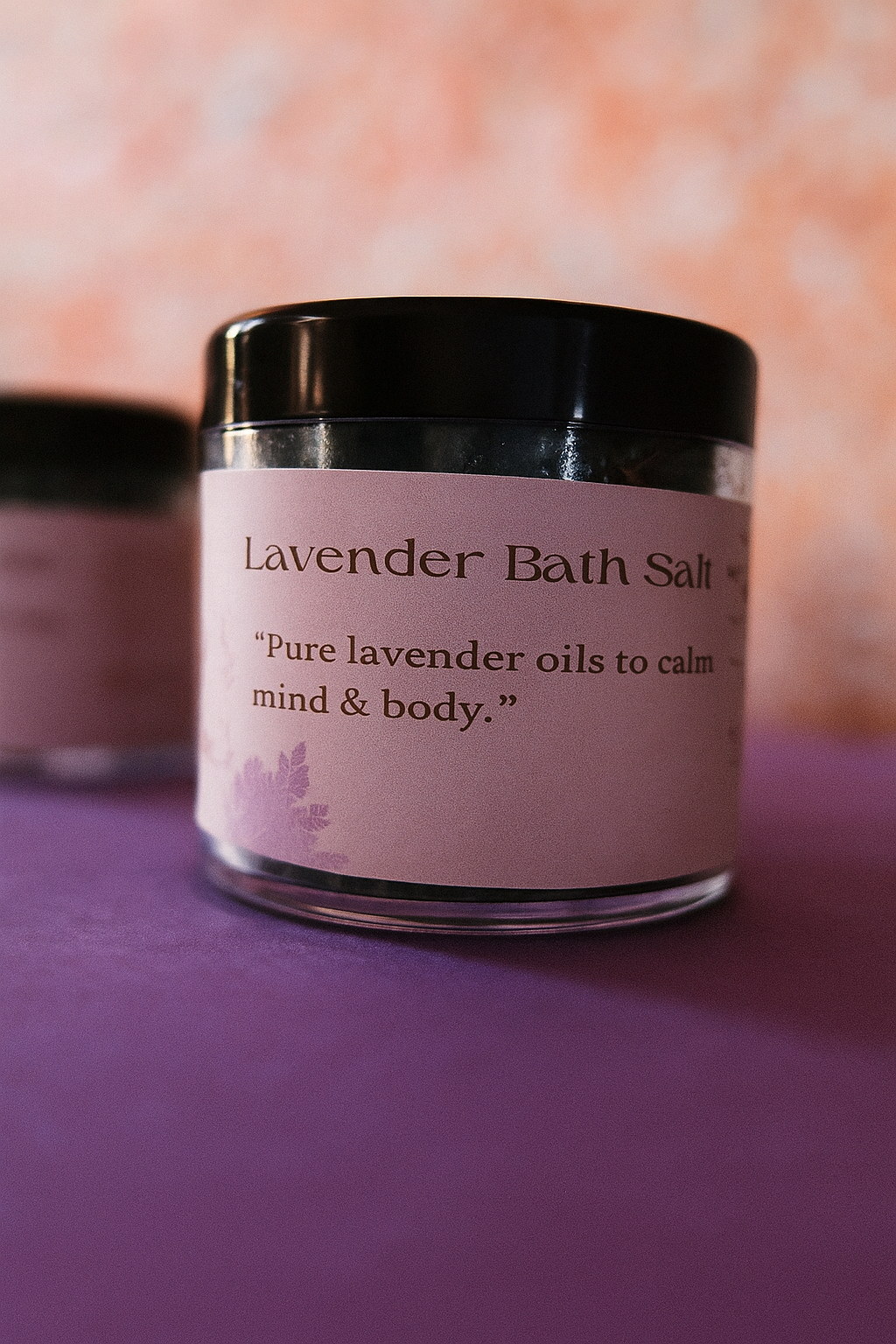 Description:-  Unwind in the gentle embrace of Lavender Calm, a soothing bath soak crafted to help you release the day’s stress and sink into stillness. Made with mineral-rich Epsom and rock salts, infused with therapeutic-grade lavender essential oil, this blend helps ease anxiety, calm the nervous system, and relax tense muscles. Dried lavender buds add a botanical touch while enhancing the aroma naturally. Whether you’re winding down before bed or craving a moment of peace, this soak is your go-to ritual for inner serenity. Let the floral scent transport you to a place of calm. Best used for: stress relief, anxiety, night-time self-care.