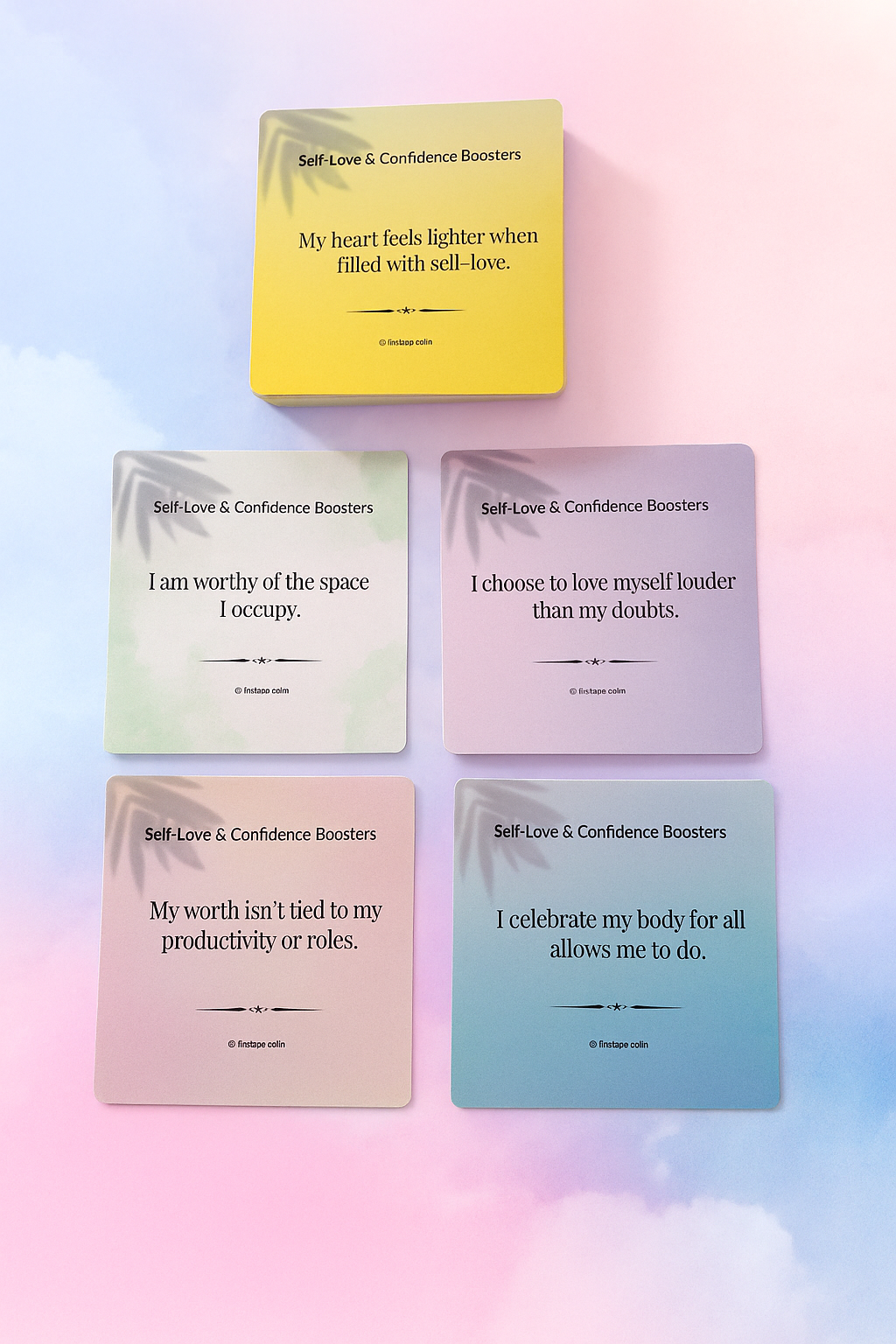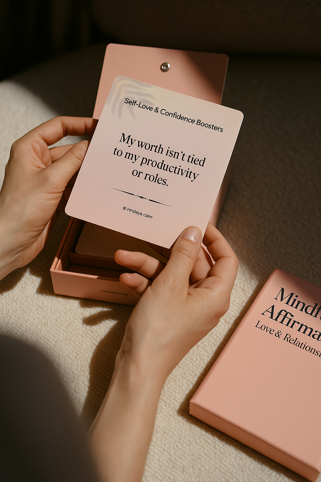 Our Self-Love & Confidence Booster Cards are created to uplift and empower you from within. Each card reminds you to appreciate your journey, embrace your uniqueness, and trust your inner strength. These affirmations replace self-criticism with compassion and self-doubt with courage. Keep them by your mirror, on your work desk, or in your journal — wherever you need a spark of encouragement. Every word is a loving reminder from Hridaya Calm that self-worth grows with kindness. Perfect for gifts, self-care routines, or anyone rebuilding confidence, this deck inspires you to shine with authenticity and grace. 💕